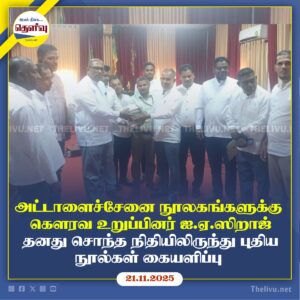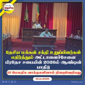 Read Moreஅட்டாளைச்சேனை பிரதேச சபையின் 2026 பட்ஜெட்டினை NPP உறுப்பினர்கள் எதிர்த்தும் 13 உறுப்பினர்களின் ஆதரவுடன் நிறைவேறியது.