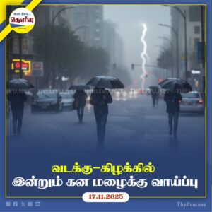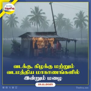 Read Moreவடக்கு, கிழக்கு உள்ளிட்ட பல மாகாணங்களில் இன்று மழை மற்றும் இடியுடன் கூடிய மழை ஏற்படும் நிலையில், பொதுமக்கள் முன்னெச்சரிக்கை நடவடிக்கைகள் மேற்கொள்ளவும்.