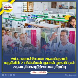 Read Moreஅட்டாளைச்சேனை ஆலங்குளம் பகுதியில் 7 மில்லியன் ரூபாய் செலவில் கட்டப்பட்ட சிறிய ஆடைத்தொழிற்சாலை திறந்து வைக்கப்பட்டுள்ளது.