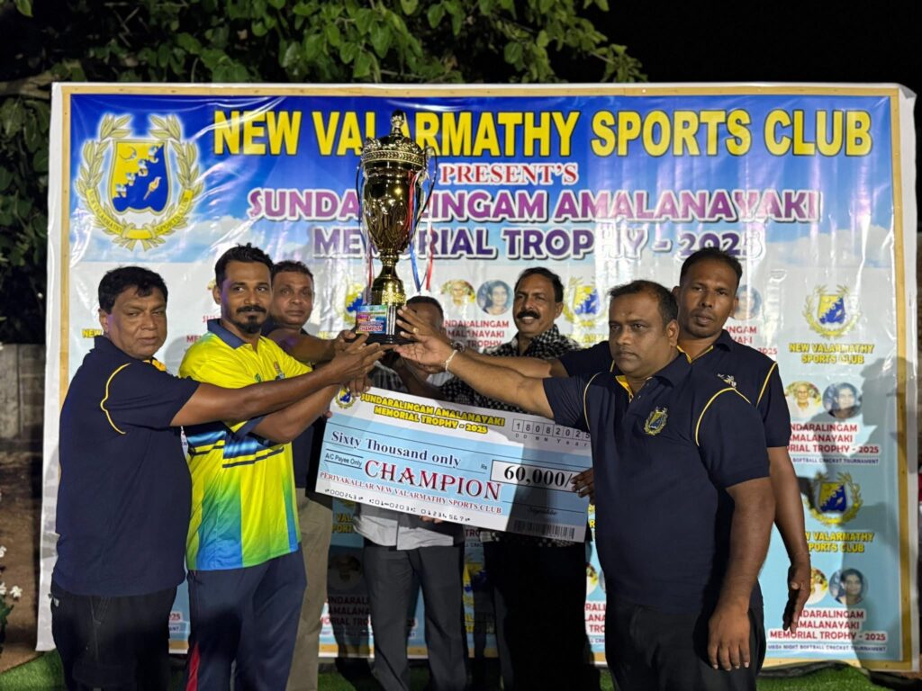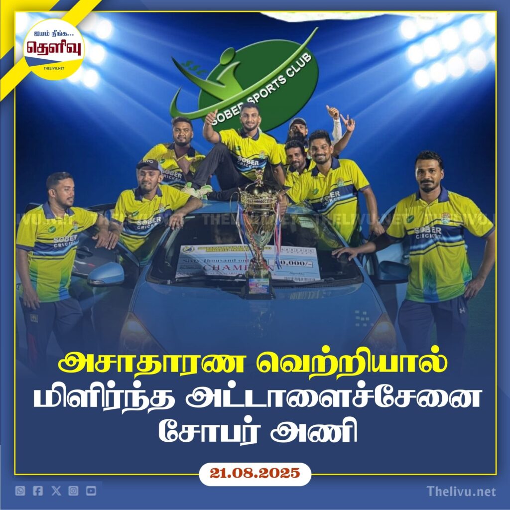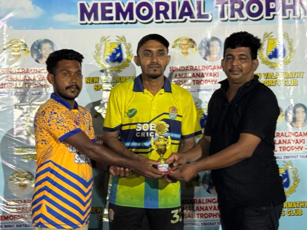 பெரிய கல்லாறு நியூ வளர்மதி விளையாட்டுக் கழகம் நடத்திய மென்பந்து கிரிக்கெட் சுற்றுப்போட்டியில் கிழக்கு மாகாணத்தைச் சேர்ந்த 64 அணிகள் பங்கேற்றன. பல வலுவான அணிகளை வீழ்த்தி முன்னேறிய அட்டாளைச்சேனை சோபர் அணி, நேற்று (19.08.2025)இறுதிப் போட்டியில் ரசிகர்கள் கூட்டம் குரல் கொடுத்து உற்சாகம் அளிக்க, ஆட்டம் தோறும் பரபரப்பை அதிகரிக்க மிகுந்த எதிர்பார்ப்புடன் தனது அசத்தலான ஆட்டத்தால்