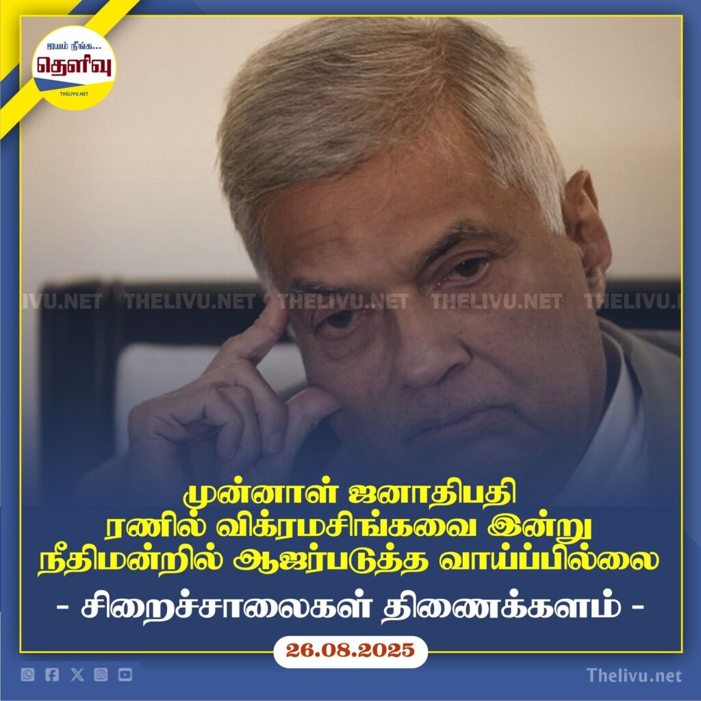 முன்னாள் ஜனாதிபதி ரணில் விக்ரமசிங்கவை இன்று நீதிமன்றில் ஆஜர்படுத்த வாய்ப்பில்லை – சிறைச்சாலைகள் திணைக்களம்