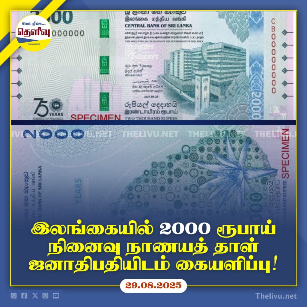 இலங்கையில் 2000 ரூபாய் நினைவு நாணயத் தாள் ஜனாதிபதியிடம் கையளிப்பு