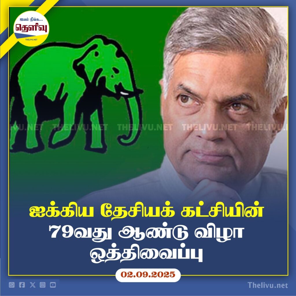 எதிர்வரும் சனிக்கிழமை (06) நடைபெறவிருந்த ஐக்கிய தேசியக் கட்சியின் 79வது ஆண்டு நிறைவு விழா ஒத்திவைக்கப்பட்டுள்ளதாக அறிவிக்கப்பட்டுள்ளது.