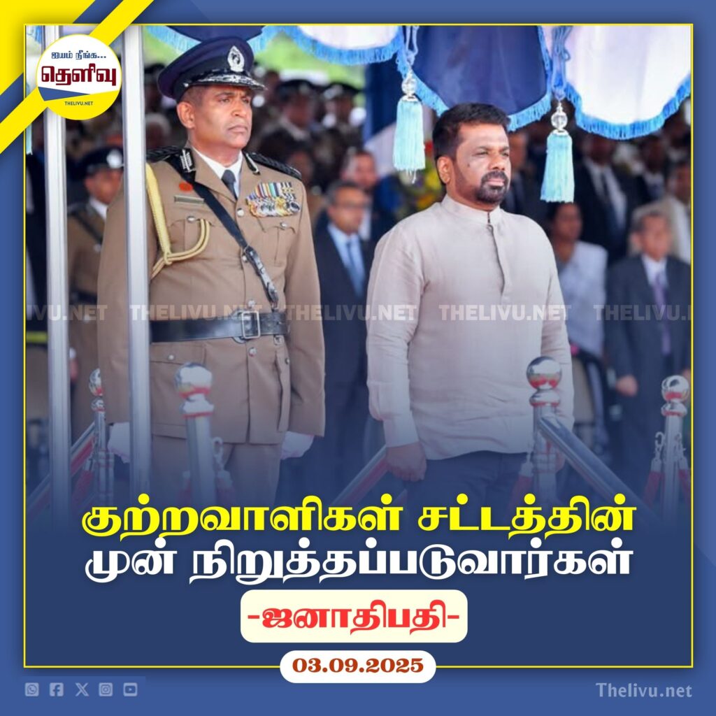 தனது உரையில், “எந்தக் குற்றமும் காலப்போக்கில் மறைந்து போகாது; குற்றவாளிகளை சட்டத்தின் முன் நிறுத்துவதில் தாமதம் இடையூறாகாது. தங்கள் கடமைகளை நேர்மையாக நிறைவேற்றும் பொலிஸ் அதிகாரிகளைப் பாதுகாக்க அரசாங்கம் உறுதியான நடவடிக்கை எடுக்கும்” என்று ஜனாதிபதி வலியுறுத்தினார்.
