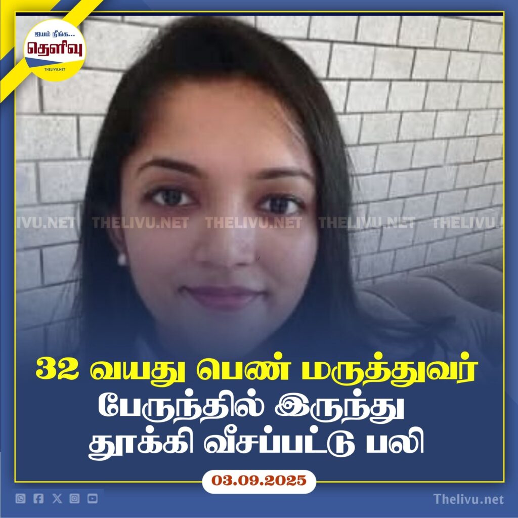 இரத்தினபுரி – பேருந்தில் பயணித்த பெண் மருத்துவர் ஒருவர் பேருந்திலிருந்து தூக்கி வீசப்பட்டதில், பலத்த காயங்களால் உயிரிழந்துள்ளார்.