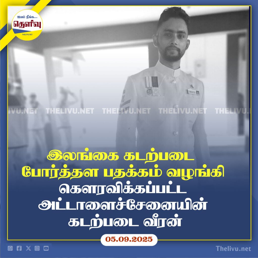 அட்டாளைச்சேனை பிரதேசத்தைச் சேர்ந்த அப்துல் காதர் றிழா முஹம்மத் என்பவருக்கு கடந்த (2025.09.01) ஆம் திகதி இலங்கை கடற்படைத் தளபதி Vice Admiral BAKSP பாணகொட, RSP, USP, ndc, psc. வினால் “Surface Warfare Bagde” என்றழைக்கப்படும் கடற்படை போர்த்தள பதக்கம் வழங்கி கௌரவிக்கப்பட்டது.