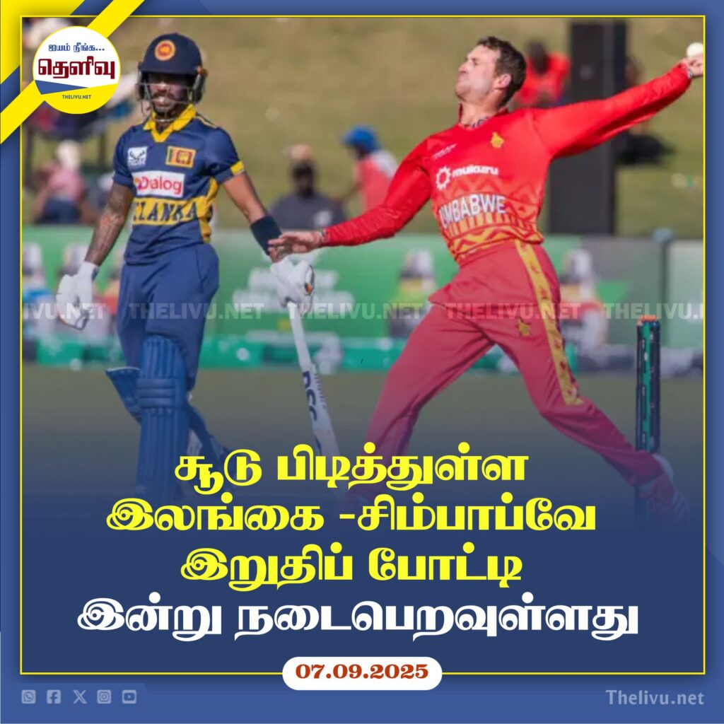 இலங்கை – சிம்பாப்வே அணிகளுக்கிடையிலான மூன்றாவது மற்றும் இறுதியான இருபதுக்கு–20 கிரிக்கெட் போட்டி இன்று (7) ஹராரேயில் நடைபெறுகிறது.