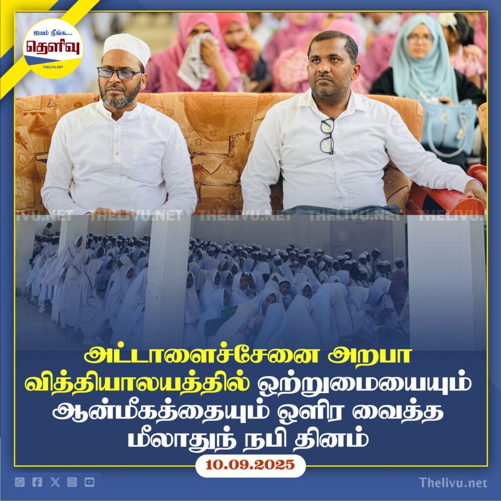 மனிதகுலத்திற்கு அன்பும் கருணையும் வழிகாட்டிய நபி முஹம்மது (ஸல்) அவர்களின் பிறந்த தினம் அட்டாளைச்சேனை அறபா வித்தியாலயத்தில் கல்வி அமைச்சின் 28/2025ம் இலக்க சுற்று நிருபத்திற்கமைய இன்று (10.09.2025) சிறப்பாகக் கொண்டாடப்பட்டது.