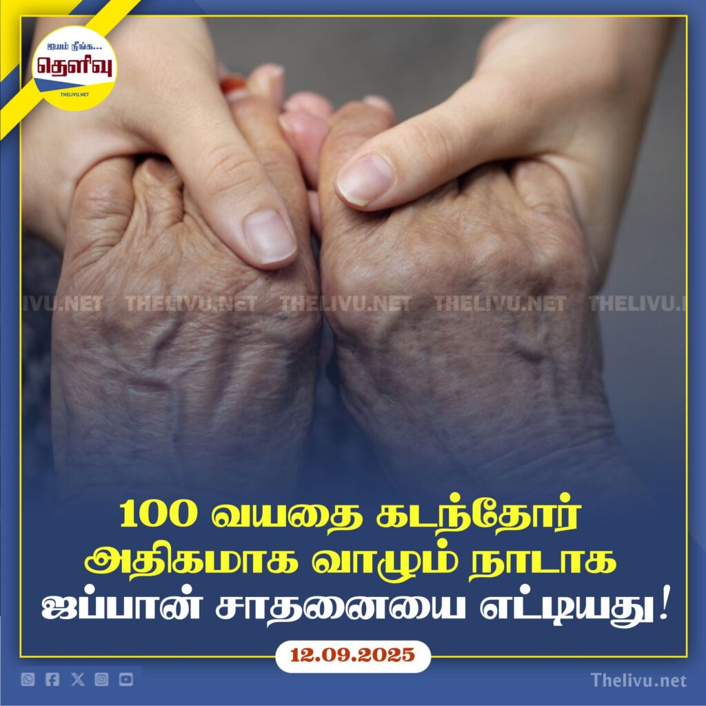 ஜப்பானில் 100 வயது மற்றும் அதற்கு மேற்பட்டோரின் எண்ணிக்கை வரலாற்றிலேயே அதிகபட்சத்தை எட்டியுள்ளது. ஜப்பான் சுகாதார அமைச்சகம் வெளியிட்டுள்ள சமீபத்திய தரவுகளின்படி, நூற்றாண்டு வாழ்வோரின் எண்ணிக்கை 1 லட்சம் என்ற மைல்கல்லை நெருங்கி வருகிறது.