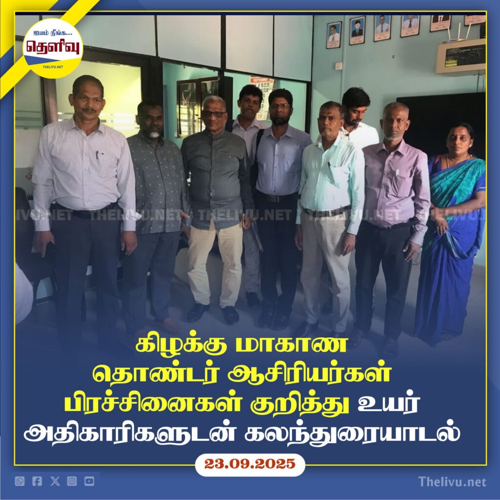 கிழக்கு மாகாணத்தில் பணியாற்றும் தொண்டர் ஆசிரியர்கள் எதிர்நோக்கும் சவால்கள் மற்றும் பிரச்சினைகள் தொடர்பாக நேற்று (22.09.2025) முக்கியமான கலந்துரையாடல் நடைபெற்றது.