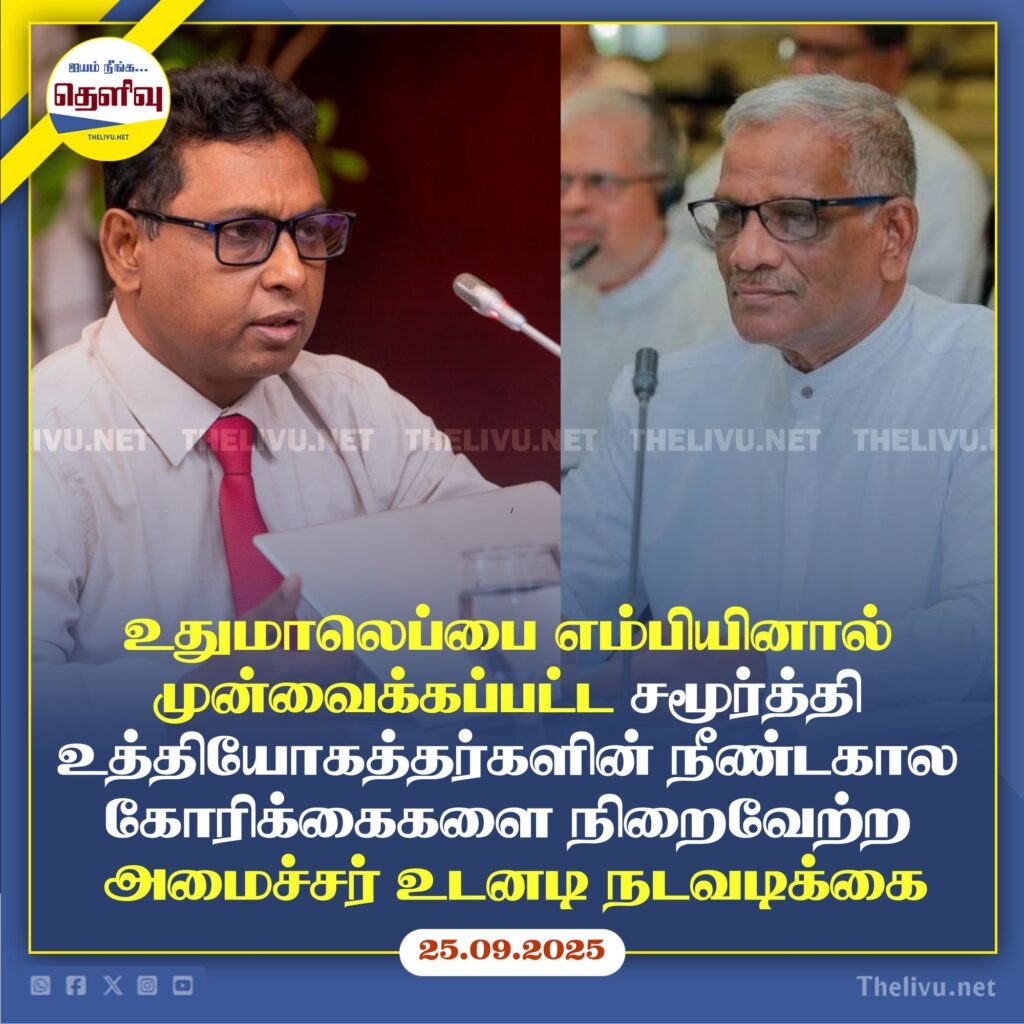 கடந்த 30 ஆண்டுகளாக நாட்டின் வறுமையை ஒழிப்பதில் முக்கிய பங்கு வகித்த சமூர்த்தி அபிவிருத்தி உத்தியோகத்தர்கள் இதுவரை பதவி உயர்வு பெறாமை குறித்து பாராளுமன்ற உறுப்பினர் உதுமாலெப்பை கவலை வெளியிட்டார். மேலும், வெற்றிடங்கள் நீண்டகாலமாக நிரப்பப்படாமையும், தமிழ் மொழிப் பிரதேசங்களுக்கு சிங்கள மொழியிலேயே கடிதங்கள் அனுப்பப்படுவதால் மக்கள் சிரமமடைவதும் குறிப்பிடத்தக்க பிரச்சினைகளாக உள்ளதாகவும் அவர் சுட்டிக்காட்டினார்.