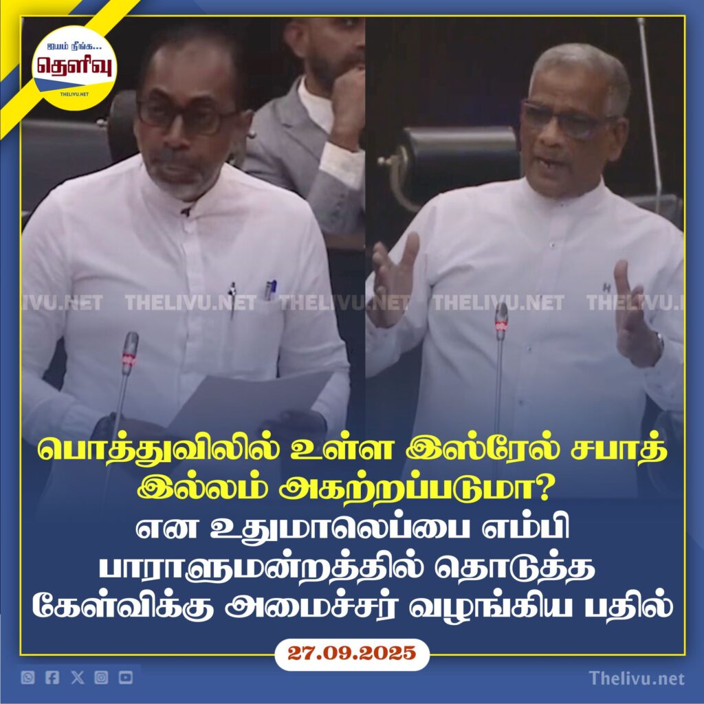 பாராளுமன்றம் நேற்று (26.09.2025) கௌரவ சபாநாயகர் ஜகத் விக்கிரமரத்ன அவர்களின் தலைமையில் நடைபெற்ற போது அம்பாறை மாவட்ட பாராளுமன்ற உறுப்பினர் கௌரவ எம்.எஸ்.உதுமாலெப்பை அவர்கள் புத்தசாசன, சமய மற்றும் கலாசார அலுவல்கள் அமைச்சர் கௌரவ ஹினிதும சுனில் செனவி அவர்களிடம் பொத்துவில் பகுதியில் அமைந்துள்ள இஸ்ரேலியர்களின் ‘சபாத் இல்லம்’ தொடர்பாக வாய்மூல கேள்விகளை தொடுத்தார்.