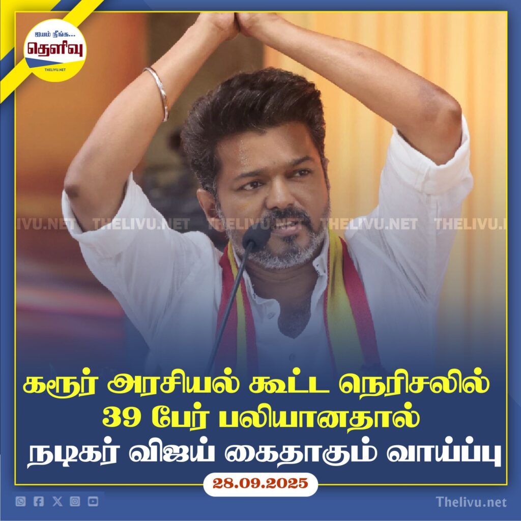 கரூர் அரசியல் கூட்ட நெரிசலில் 39 பேர் பலியானதால் நடிகர் விஜய் கைதாகும் வாய்ப்பு