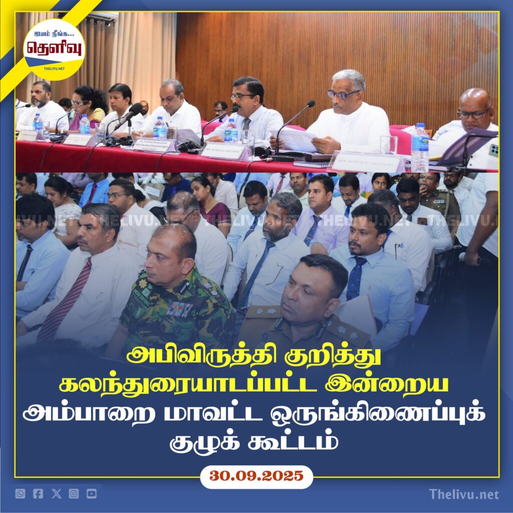அம்பாறை மாவட்ட ஒருங்கிணைப்புக் குழுக் கூட்டம் இன்று (30.09.2025) அம்பாறை மாவட்ட செயலகத்தில் உள்ள ஏ.ஐ. விக்கிரம கேட்போர் கூடத்தில் சிறப்பாக நடைபெற்றது.