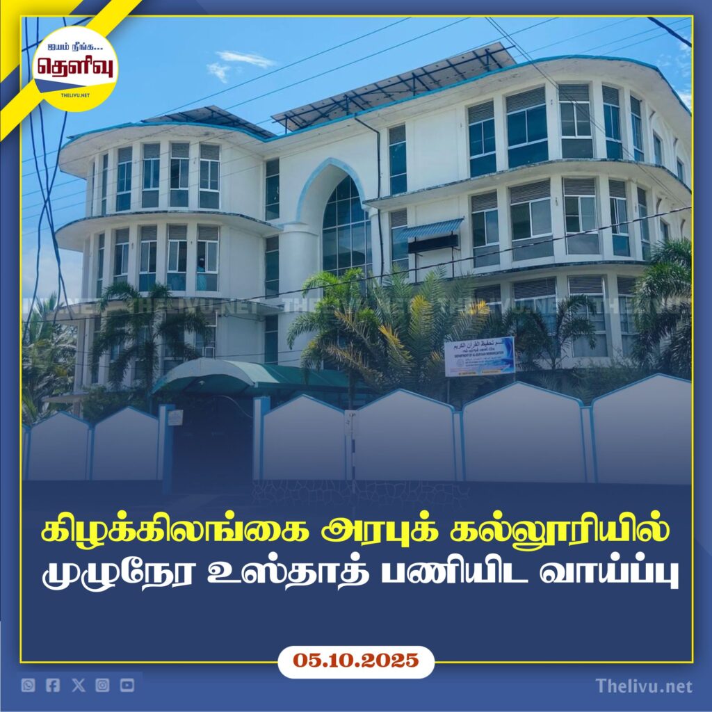 கிழக்கிலங்கை அரபுக் கல்லூரியில் முழுநேர உஸ்தாத் பணியிட வாய்ப்பு