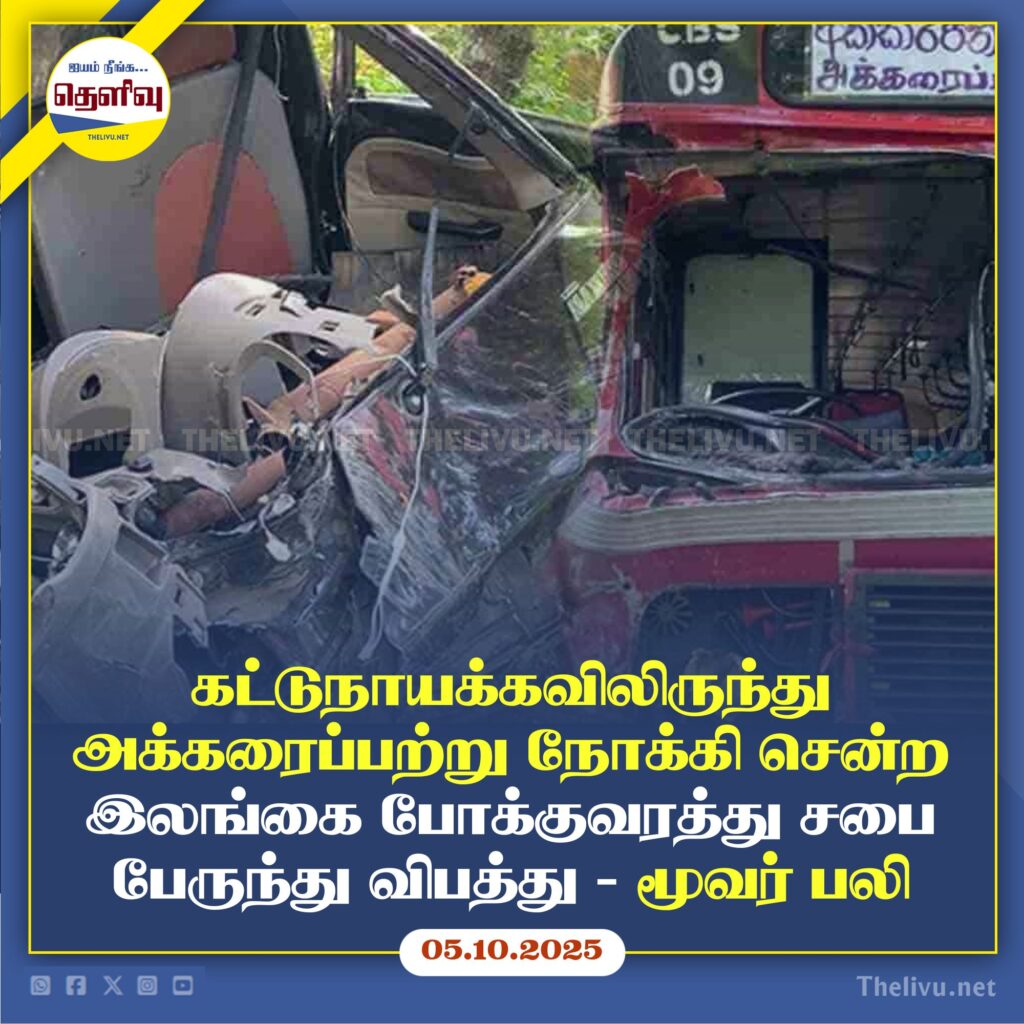 விபத்தில் லொறியில் பயணித்த சாரதி, ஆண் ஒருவர் மற்றும் பெண் ஒருவர் உயிரிழந்தனர். உயிரிழந்தவர்கள் பொலன்னறுவையைச் சேர்ந்த 41, 80 மற்றும் 82 வயதுடையவர்கள் என அடையாளம் காணப்பட்டுள்ளனர்.