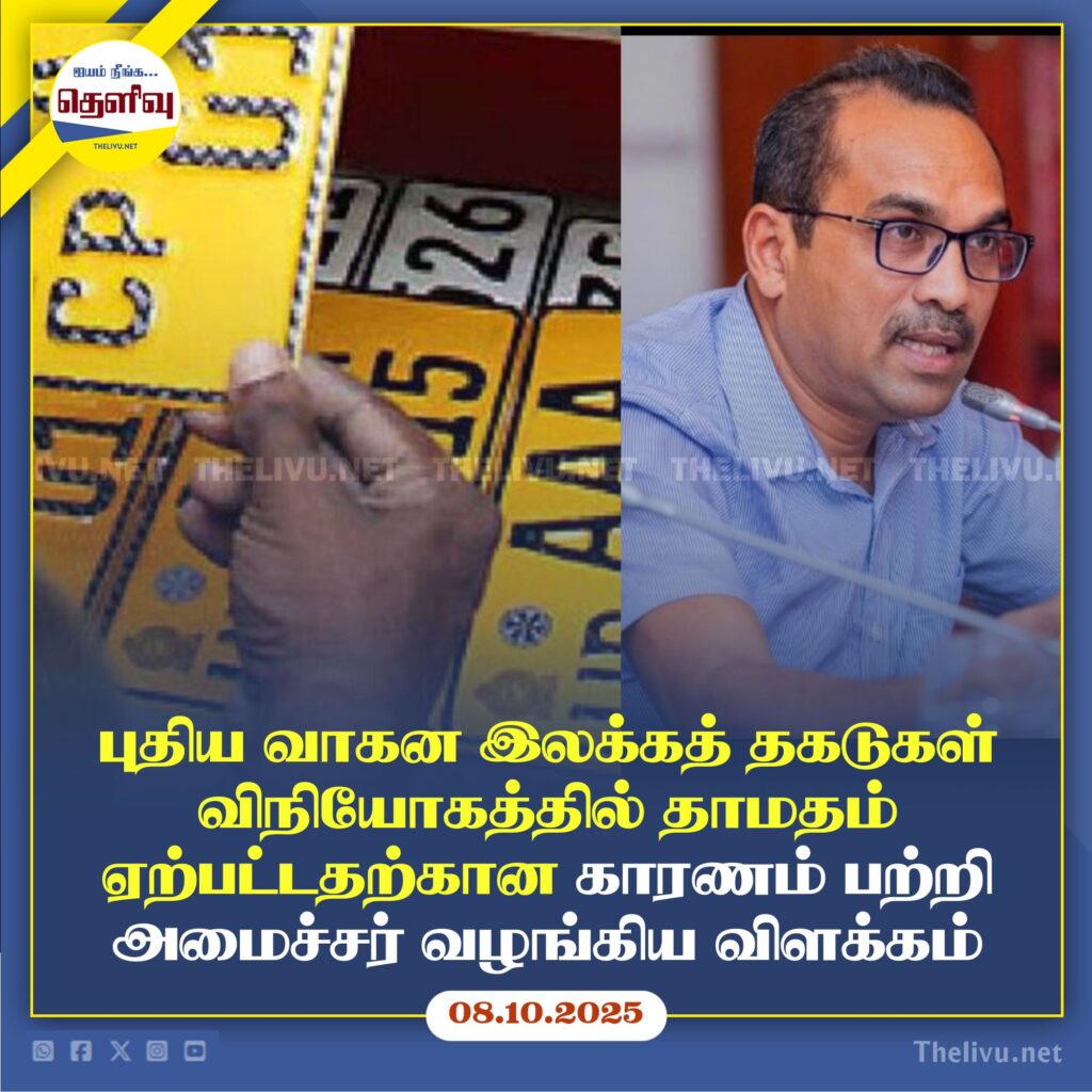 “வாகன இலக்கத்தகடுகளை வழங்கும் பணியில் திட்டமிட்டதை விட நீண்ட தாமதம் ஏற்பட்டுள்ளது. புதிய இலக்கத்தகடுகளில் ஏழு (07) சிறப்பு பாதுகாப்பு அம்சங்கள் உள்ளன. அவற்றை சோதனை செய்ய மொரட்டுவை பல்கலைக்கழகத்திடம் ஒப்படைத்தோம். பல்கலைக்கழகம் சுமார் மூன்று மாதங்கள் எடுத்தது; ஆனால் ஏழில் ஆறு அம்சங்களையே சோதனை செய்ய முடியும் என தெரிவித்தது. இதனால் ஏழாவது சோதனையை சர்வதேச அளவில் மேற்கொள்ள வேண்டியிருந்தது. இதுவே தாமதத்திற்கான முக்கிய காரணம். எனினும், பாதுகாப்பை மேம்படுத்த எடுக்கப்பட்ட முயற்சிகள் வெற்றிகரமாக முடிந்துள்ளன.”