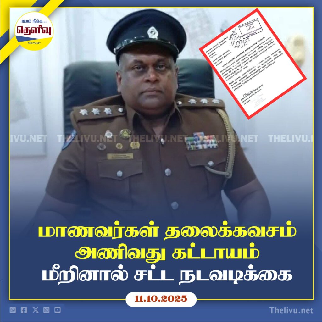 கல்முனை தலைமையக பொலிஸ் பிரிவின் கீழ் செயல்படும் கல்முனை கல்வி வலயத்திற்குட்பட்ட பாடசாலைகளுக்குச் செல்லும் மாணவ, மாணவிகள் தங்களது பாதுகாப்பிற்காக கட்டாயமாக தலைகவசம் (Helmet) அணிந்து செல்ல வேண்டும் என கல்முனை தலைமையக பொலிஸ் நிலையப் பொறுப்பதிகாரி லசந்த களுவாராய்ச்சி அறிவித்துள்ளார்.