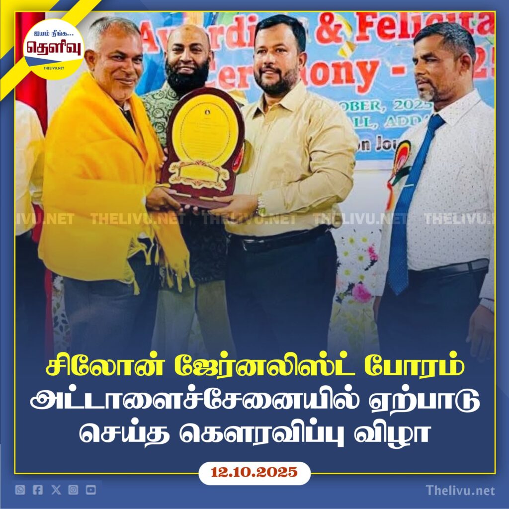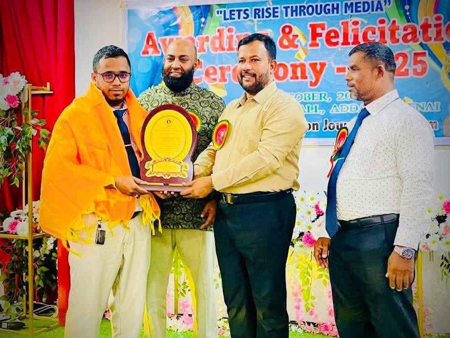 ஊடகத்துறை, கல்வி, சுகாதாரம், அரசியல், கலாசாரம் உள்ளிட்ட பல துறைகளில் சிறப்பாக பணியாற்றும் நபர்கள் பாராட்டப்பட்டு கௌரவிக்கப்பட்ட நிகழ்வானது 2025.10.11ம் திகதி சிலோன் ஜேர்னலிஸ்ட் போரத்தின் தலைவர் எம்.எஸ்.ஜஃபர் தலைமையில் அட்டாளைச்சேனையில் இடம்பெற்றது.