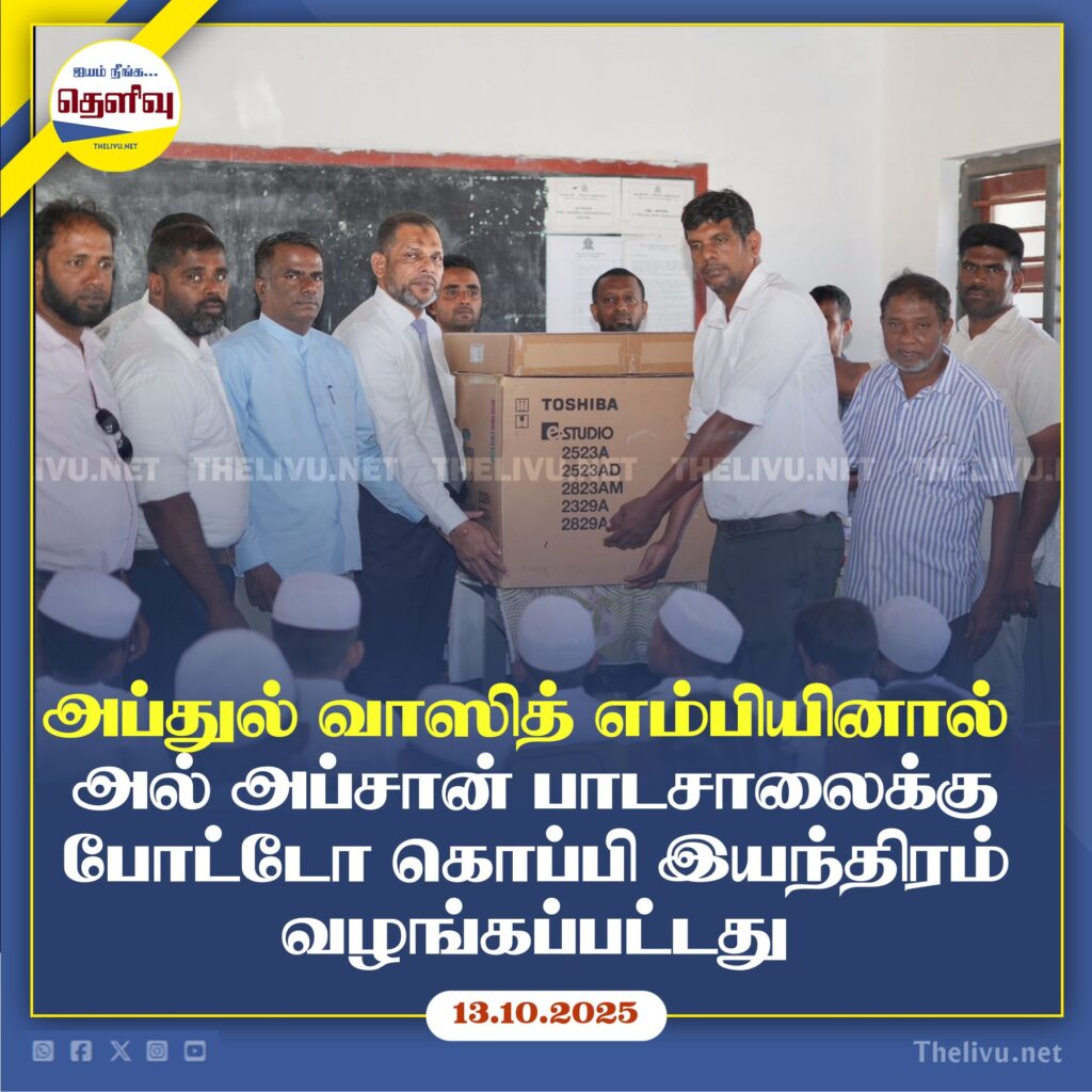அப்துல் வாஸித் எம்பியினால் அல் அப்சான் பாடசாலைக்கு போட்டோ கொப்பி இயந்திரம் வழங்கப்பட்டது