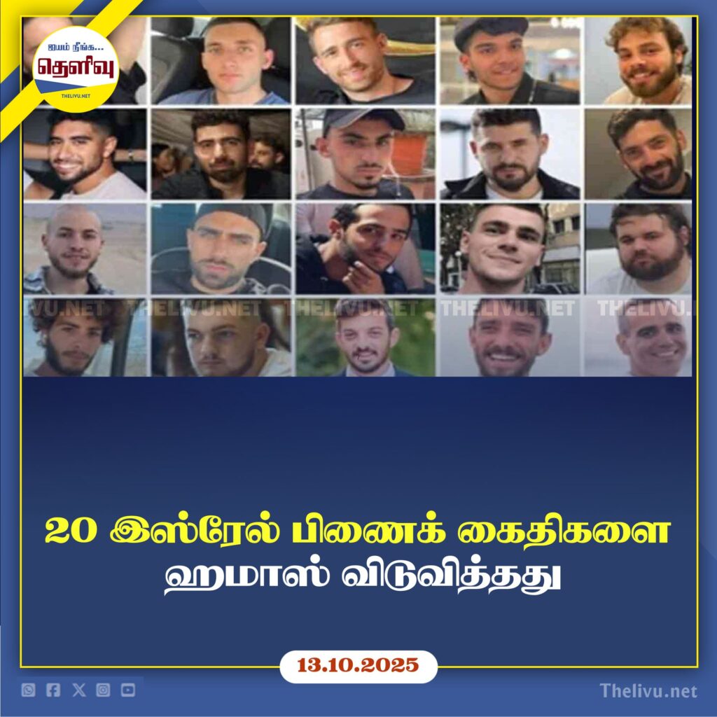 காஸா பகுதியில் நடைமுறைக்கு வந்த அமைதி ஒப்பந்தத்தின் படி ஹமாஸ் அமைப்பு தங்களிடம் இருந்த 20 இஸ்ரேல் பிணைக் கைதிகளை விடுதலை செய்துள்ளது.