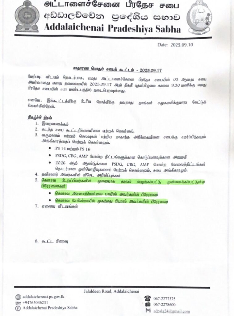 சென்ற மாத சபை அமர்வின் நிகழ்ச்சி நிரலை மக்கள் பார்வைக்காக நாம் இத்துடன் பதிவேற்றுகிறோம்.