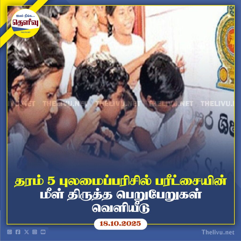 2025 ஆகஸ்ட் 10ஆம் திகதி நடைபெற்ற தரம் 5 புலமைப்பரிசில் பரீட்சையின் மீள் திருத்த பெறுபேறுகள் வெளியிடப்பட்டுள்ளதாக இலங்கை பரீட்சைகள் திணைக்களம் அறிவித்துள்ளது.