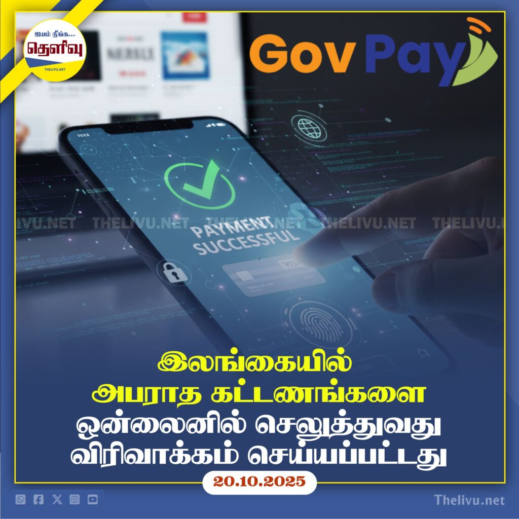 இன்று (20) முதல் தென் மாகாண மக்களுக்கு GovPay மூலமாக போக்குவரத்து அபராதங்களை ஆன்லைனில் செலுத்தும் புதிய வசதி அறிமுகப்படுத்தப்பட்டுள்ளது.