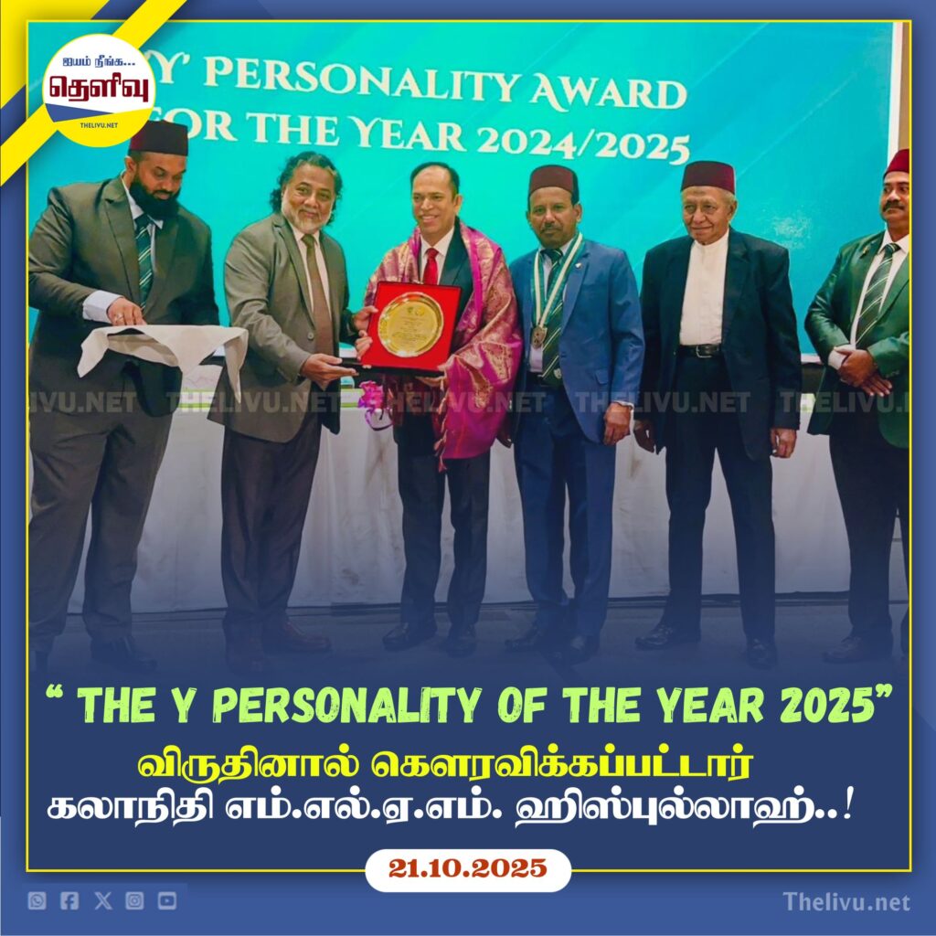 “The Y Personality of the Year 2025” என்ற விருதை இலங்கைப் பாராளுமன்றத்தின் பிரதிச் சபாநாயகர் வைத்தியர் றிஸ்வி சாலிஹ் அவர்கள் வழங்கி கௌரவித்தார்.
