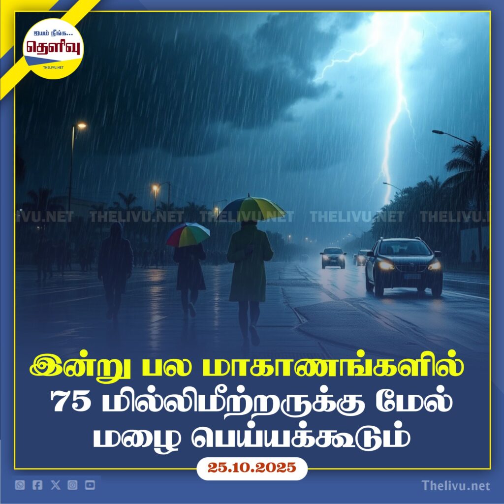 அதே நேரத்தில், சில இடங்களில் 75 மில்லிமீற்றருக்கு மேற்பட்ட அளவில் பலத்த மழை பெய்யும் வாய்ப்பும் உள்ளதாக திணைக்களம் எச்சரித்துள்ளது.