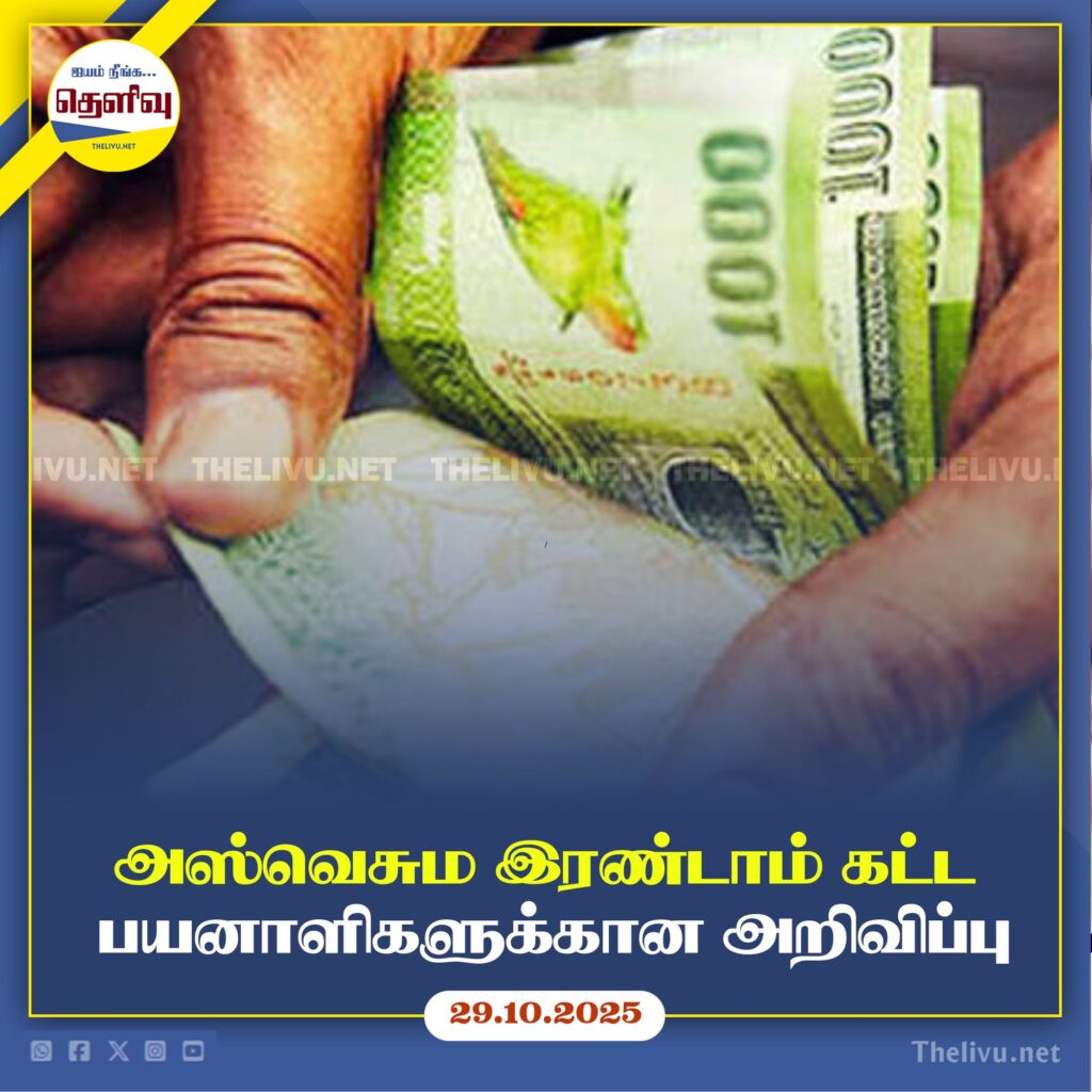 இதன்படி, ‘அஸ்வெசும’ இரண்டாம் கட்டத்திற்குத் தெரிவு செய்யப்பட்டு வங்கிக் கணக்கு இல்லாதவர்கள் தமது பிரதேச செயலகத்திற்குச் சென்று வங்கிக் கணக்கு திறப்பதற்கான கடிதத்தைப் பெற்றுக்கொள்ள வேண்டும்.