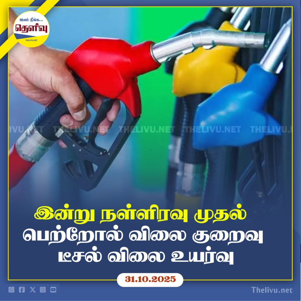 இத்துடன், எரிபொருள் விலை மாற்றங்கள் இன்று நள்ளிரவு முதல் நாடு முழுவதும் அமுல்படுத்தப்பட உள்ளன.