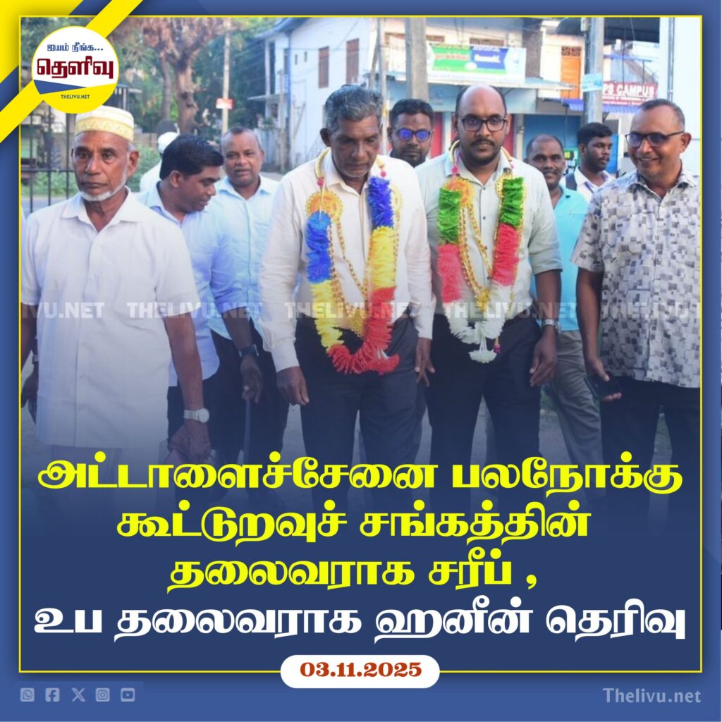 அட்டாளைச்சேனை பலநோக்கு கூட்டுறவுச் சங்கத்தின் தலைவராக சரீப் , உப தலைவராக ஹனீன் தெரிவு