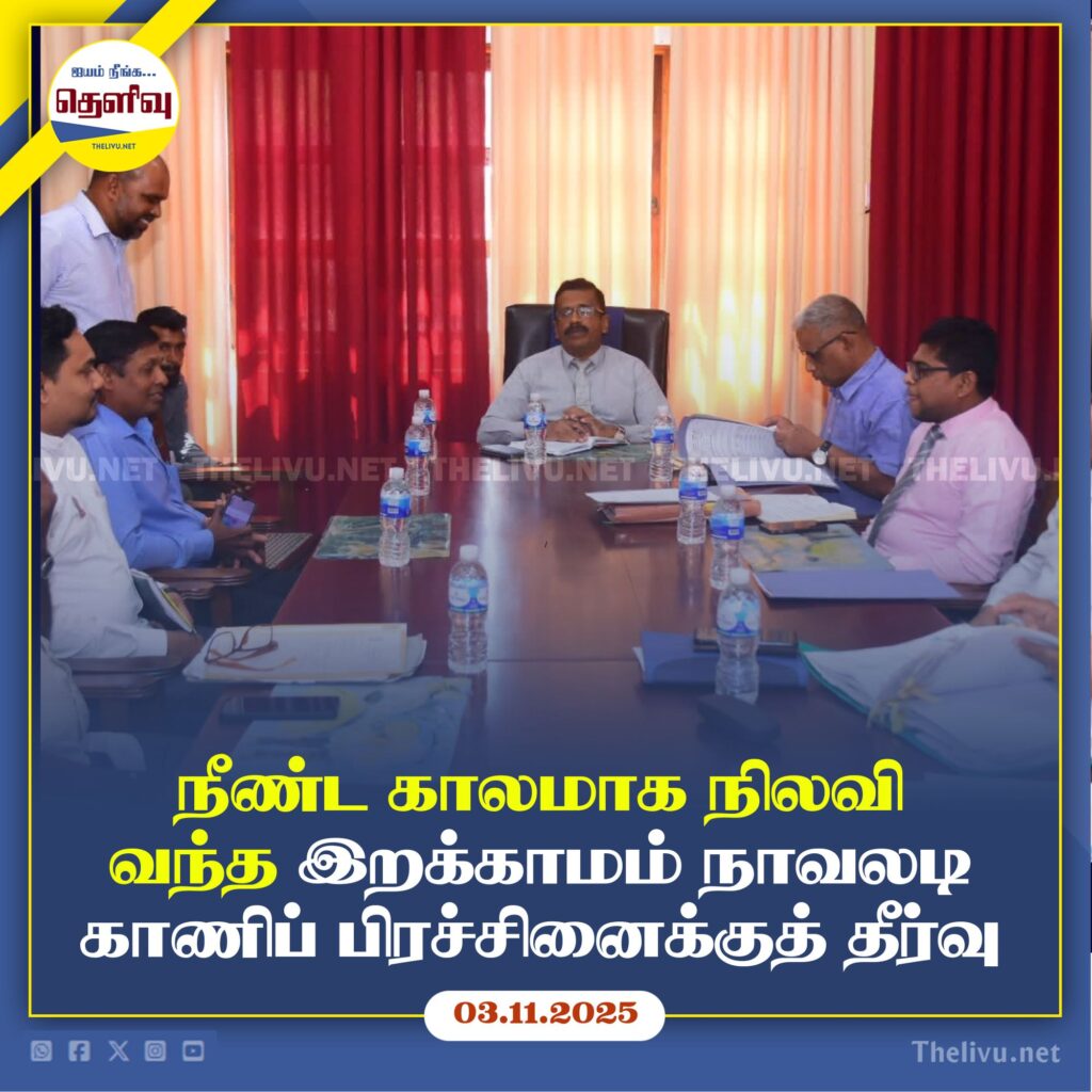 அம்பாறை மாவட்டத்தின் இறக்காமம் பிரதேச செயலகத்திற்குட்பட்ட நாவலடி வட்டையில் நீண்டகாலமாக நிலவி வந்த காணி பிரச்சினைக்கு தீர்வு காணும் நோக்கில் ஒரு முக்கியக் கூட்டம் கடந்த 2025.10.28ம் திகதி அம்பாறை மாவட்ட அரசாங்க அதிபர் திரு. சிந்தக்க அபேவிக்ரம தலைமையில் இறக்காமம் பிரதேச செயலகத்தில் நடைபெற்றது.