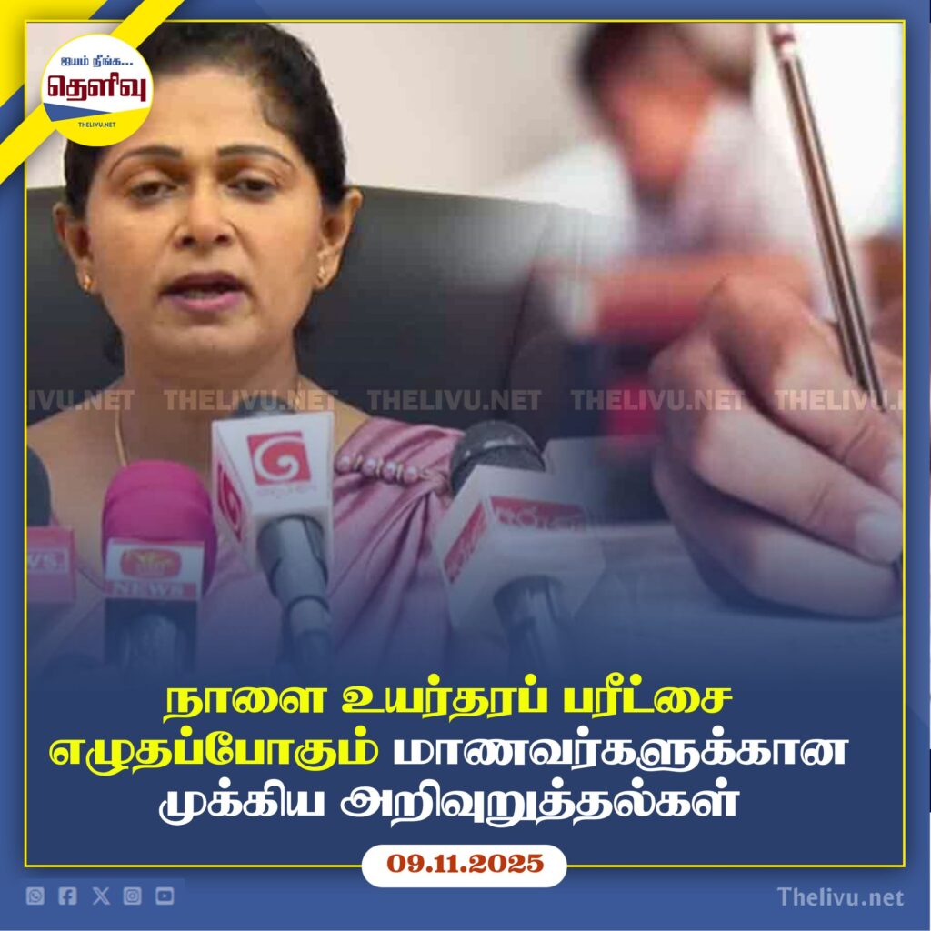 2025 ஆம் ஆண்டுக்கான கல்விப் பொதுத் தராதர உயர்தரப் பரீட்சையை நாளை (10) முதல் நடத்துவதற்கான அனைத்து ஏற்பாடுகளும் முடிவடைந்துள்ளதாக பரீட்சைத் திணைக்களம் அறிவித்துள்ளது.