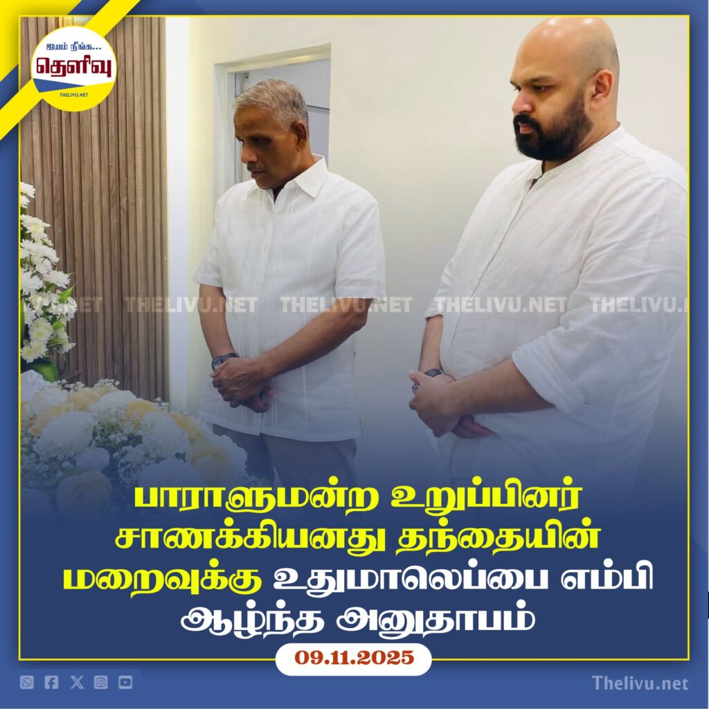 மட்டக்களப்பு மாவட்டத்தைச் சேர்ந்த தமிழரசுக் கட்சி பாராளுமன்ற உறுப்பினர் இராசமாணிக்கம் சாணக்கியன் அவர்களின் அன்புத் தந்தை மறைந்த அமரர் Dr. இராஜபுத்திரன் இராசமாணிக்கம் அவர்களின் இறுதிச் சடங்கு நிகழ்வில் ஸ்ரீலங்கா முஸ்லிம் காங்கிரஸின் பிரதித் தேசிய அமைப்பாளரும், அம்பாறை மாவட்ட பாராளுமன்ற உறுப்பினருமான எம். எஸ். உதுமாலெப்பை அவர்கள் 08.11.2025ம் திகதி கொழும்பு பொரளை ஜயரட்ண மலர்ச்சாலைக்கு சென்று மரியாதை செலுத்தியதுடன் மறைந்தவரின் குடும்பத்தினரையும் சந்தித்து தனது ஆழ்ந்த அனுதாபங்களையும் தெரிவித்தார்.