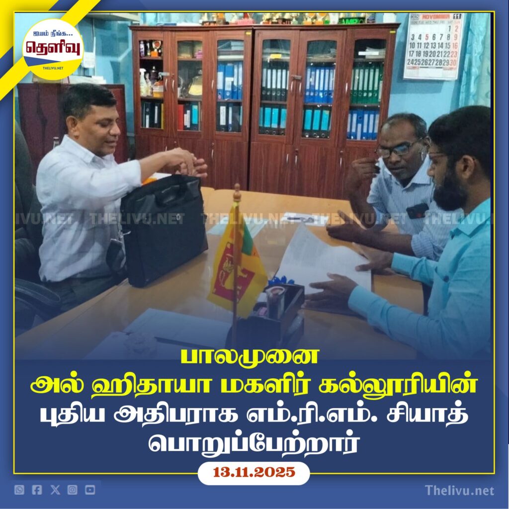பாலமுனை அல்-ஹிதாயா மகளிர் கல்லூரியின் புதிய அதிபராக எம்.ரி.எம். சியாத் அவர்கள் இன்று (வியாழக்கிழமை) தனது கடமைகளை அதிகாரப்பூர்வமாக ஏற்றுக்கொண்டார்.
