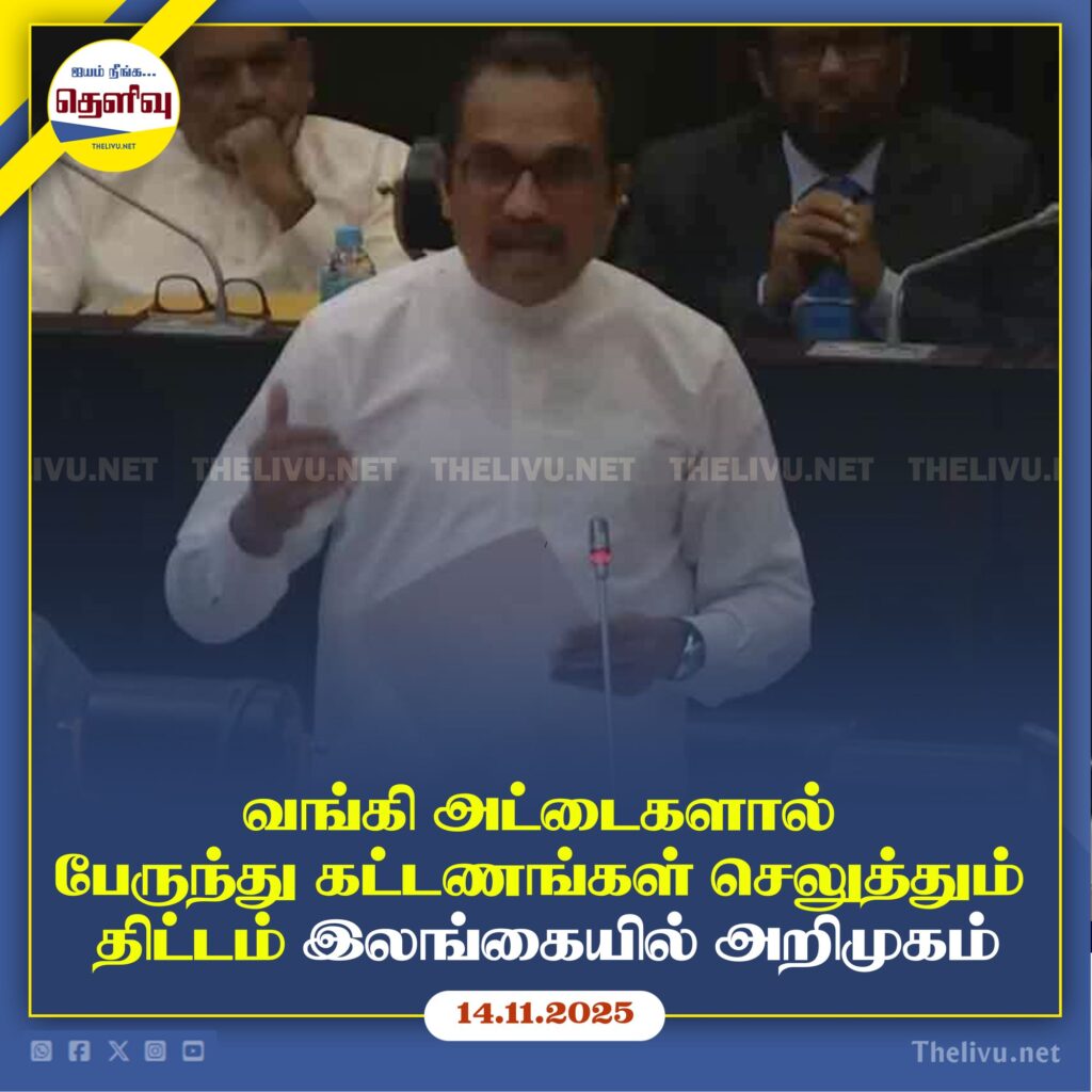 பொதுப் பேருந்துகளில் பயண கட்டணங்களை வங்கி வரவு (டெபிட்) மற்றும் கடன் (கிரெடிட்) அட்டைகள் மூலம் செலுத்தும் புதிய வசதி விரைவில் அறிமுகப்படுத்தப்படுகிறது என போக்குவரத்து அமைச்சர் பிமல் ரத்நாயக்க தெரிவித்துள்ளதுடன் இம்முறை நவம்பர் 24ஆம் திகதி அதிகாரப்பூர்வமாக அமுல்படுத்தப்படும் எனவும் அமைச்சர் கூறியுள்ளார்.