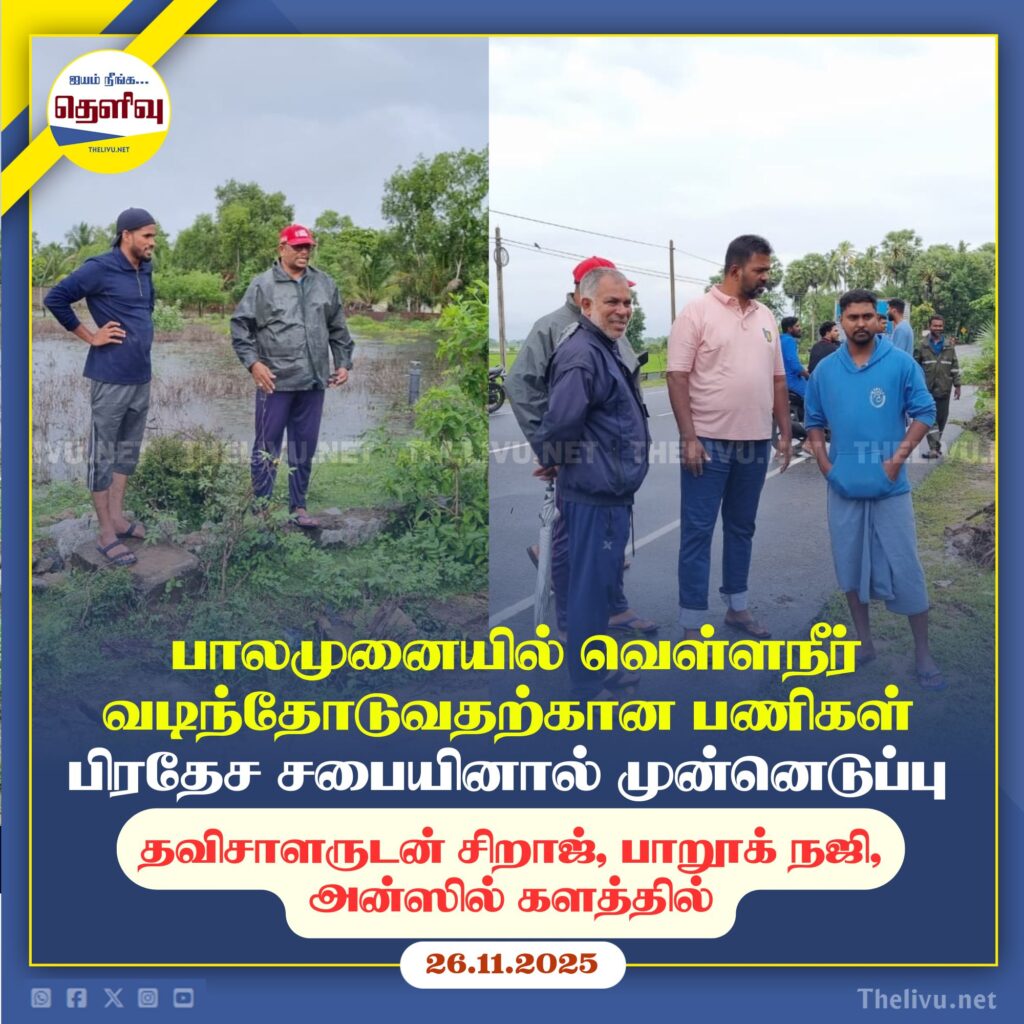 அட்டாளைச்சேனை பிரதேச சபையின் கௌரவ தவிசாளர் ஏ.எஸ்.எம். உவைஸ் அவர்களின் மேற்பார்வையின் கீழ் பாலமுனை இரண்டு வட்டாரங்களிலும் வெள்ள நீரை வடிந்தோடச் செய்வதற்கான பணிகள் நேற்று (25) ஆரம்பிக்கப்பட்டன.
