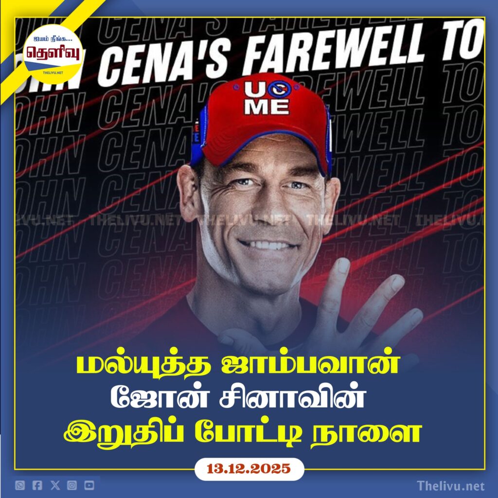 மல்யுத்த உலகின் வரலாற்றில் மிகச் சிறந்த வீரர்களில் ஒருவராகக் கருதப்படும் WWE ஜாம்பவான் ஜோன் சினா தனது இருபது ஆண்டுகால பிரகாசமான மல்யுத்த வாழ்க்கைக்கு விடை கொடுக்கத் தயாராக உள்ளார். நாளை (14) அவர் தனது கடைசி WWE இன்-ரிங் போட்டியில் பங்கேற்க உள்ளதாக வெளிநாட்டு ஊடகங்கள் செய்தி வெளியிட்டுள்ளன.