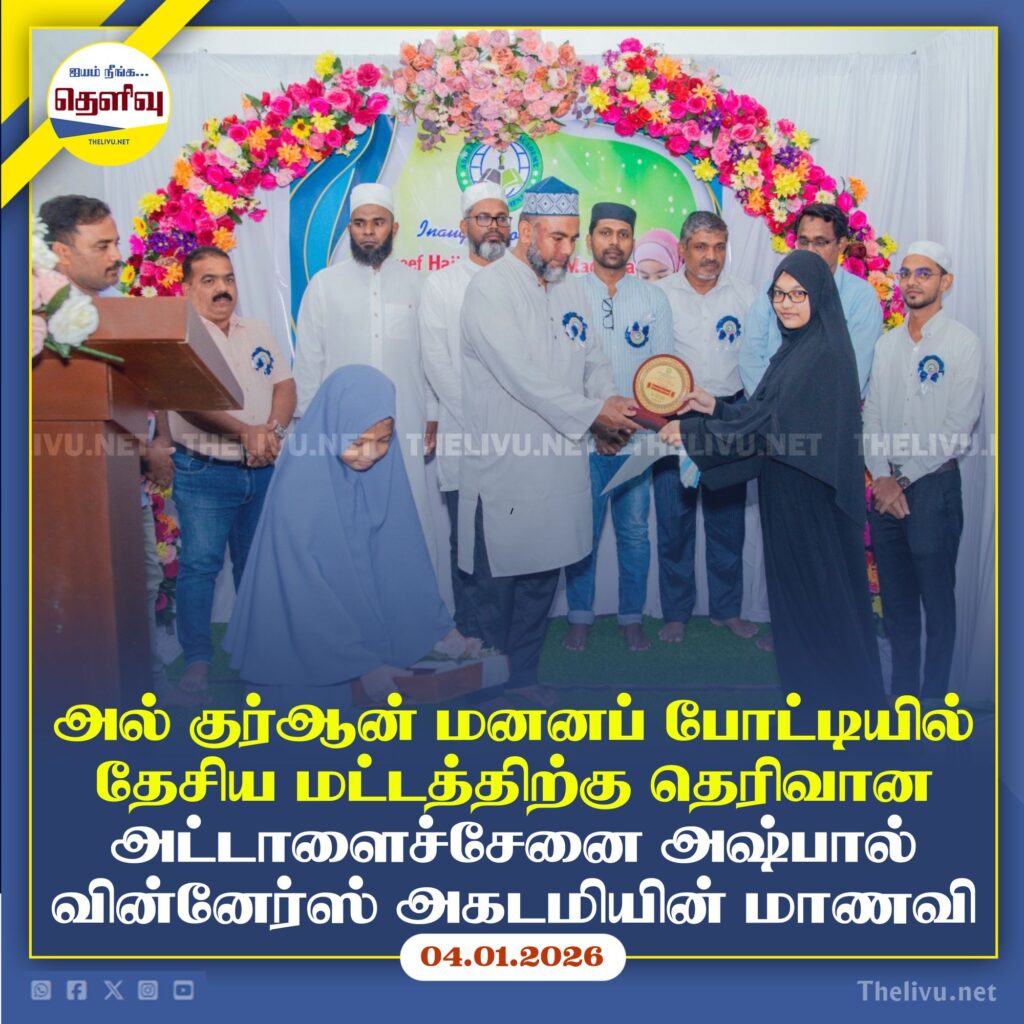 முஸ்லிம் சமய மற்றும் பண்பாட்டலுவல்கள் திணைக்களம் சவூதி அரேபியா தூதுவராலயத்துடன் இணைந்து நடத்திய அகில இலங்கை அல்குர்ஆன் மனனப் போட்டியில் அட்டாளைச்சேனை அஷ்பால் வின்னேர்ஸ் அகடமியின் மனனப் பிரிவு மாணவியான நியாஸ் பாத்திமா சம்ஹா தேசிய மட்டப் போட்டிக்கு தெரிவாகி தகுதி பெற்றுள்ளார்.