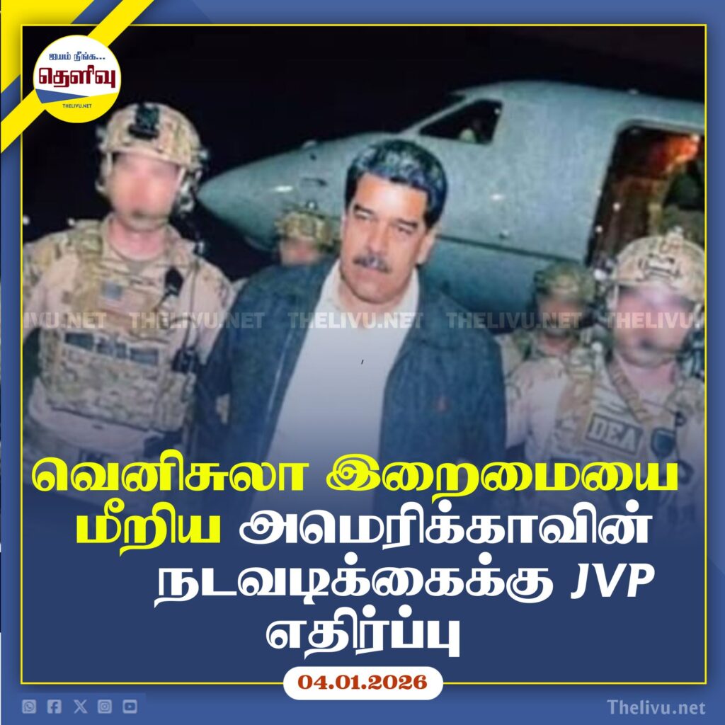 அமெரிக்கா வெனிசுலாவுக்கு எதிராக மேற்கொண்டதாக கூறப்படும் நடவடிக்கைகள் மற்றும் அந்நாட்டு ஜனாதிபதி நிக்கோலஸ் மதுரோவும் அவரது மனைவியும் அமெரிக்கப் படைகளால் கைது செய்யப்பட்டது தொடர்பில் மக்கள் விடுதலை முன்னணி (JVP) விசேட ஊடக அறிக்கை ஒன்றை வெளியிட்டுள்ளது.