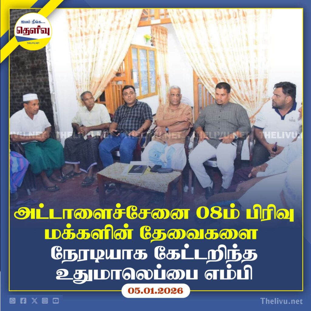 “கிராமம் தோறும் மக்களோடு மக்களாக” என்ற தொனிப்பொருளின் கீழ் மக்களிடையே நேரடியாகச் சென்று அவர்களின் பிரச்சினைகளை கேட்டறிந்து தீர்வு காணும் நோக்குடன் அட்டாளைச்சேனை 08 (கோணாவத்தை) பிரதேச மக்களின் முக்கிய தேவைகள் மற்றும் பிரச்சினைகள் தொடர்பான மக்கள் சந்திப்பு நிகழ்வு அம்பாறை மாவட்ட பாராளுமன்ற உறுப்பினரும் அட்டாளைச்சேனை பிரதேச ஸ்ரீலங்கா முஸ்லிம் காங்கிரஸ் அமைப்பாளருமான கௌரவ எம்.எஸ். உதுமாலெப்பை அவர்களின் தலைமையில் நேற்று (04.01.2026) நடைபெற்றது.
