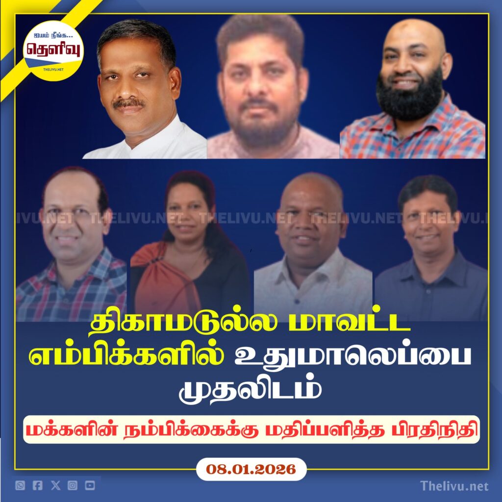 அந்த தரவரிசையில் திகாமடுல்ல மாவட்டத்தை பிரதிநிதித்துவப்படுத்தும் மக்களால் தேர்ந்தெடுக்கப்பட்ட முஸ்லிம் நாடாளுமன்ற உறுப்பினர்களில் எம்.எஸ். உதுமாலெப்பை முதல் இடத்தைப் பெற்று முன்னிலை வகித்துள்ளார்.