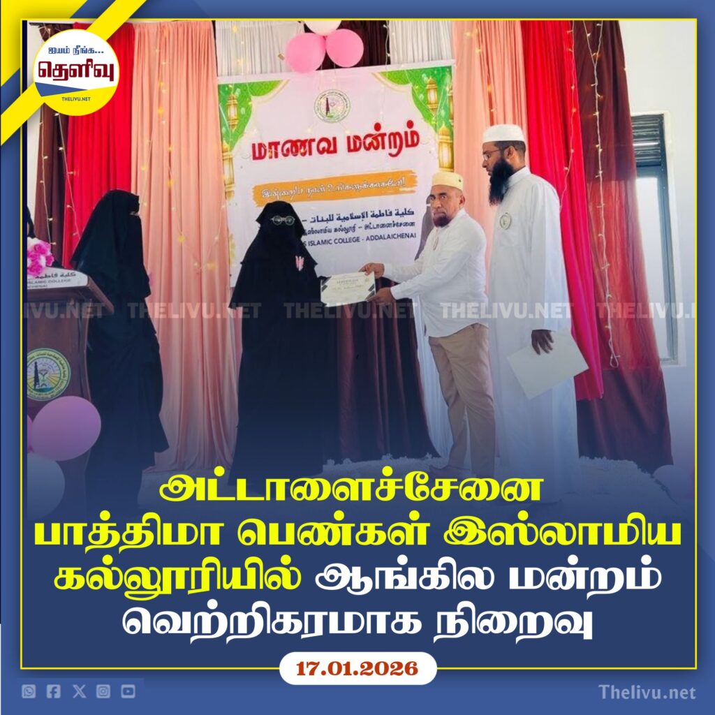 அட்டாளைச்சேனை பாத்திமா பெண்கள் இஸ்லாமிய கல்லூரி மாணவியர்களின் திறன் மேம்பாட்டை இலக்காகக் கொண்டு அமைக்கப்பட்ட மாணவியர் மன்றத்தின் 2026ஆம் ஆண்டிற்கான முதலாவது நிகழ்வு “Talk Time – Let’s Talk in English” என்ற தொனிப்பொருளில் கல்லூரியின் அதிபர் றயீஸ் முப்தி(ஹாமிதி) அவர்களின் தலைமையில் 2026.01.17ம் திகதி சனிக்கிழமை விமரிசையாக கல்லூரியின் மண்டபத்தில் நடைபெற்றது.