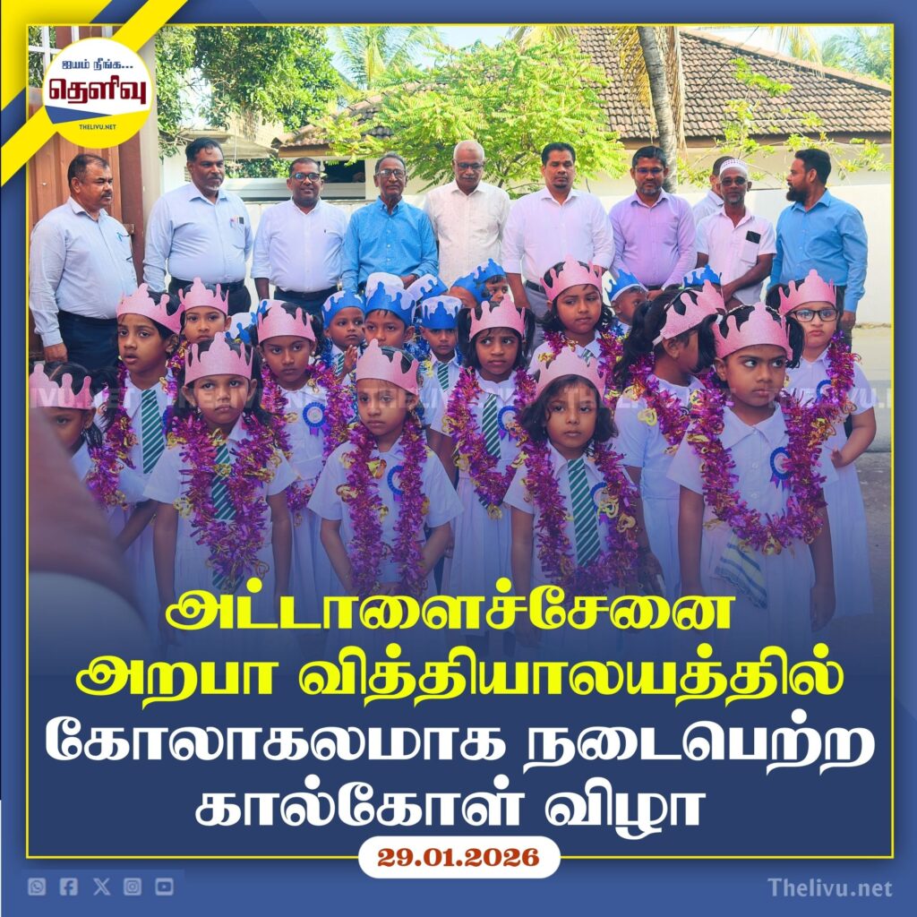 அட்டாளைச்சேனை அறபா வித்தியாலயத்தில் இவ்வருடம் (2026) புதிய பாடத்திட்டத்திற்கமைவாக தரம் ஒன்றில் கல்வி பயில இணைந்துள்ள மாணவ மொட்டுக்களை வரவேற்கும் கால்கோள் விழா “ஆரம்ப கல்விக்கான மகிழ்ச்சிகரமான ஆரம்பம்” எனும் தொனிப் பொருளில் பாடசாலையின் அதிபர் எம்.ஐ. அஜ்மீர் தலைமையில் இன்று(29) பாடசாலையின் கேட்போர் கூட மண்டபத்தில் மிக விமரிசையாக நடைபெற்றது.
