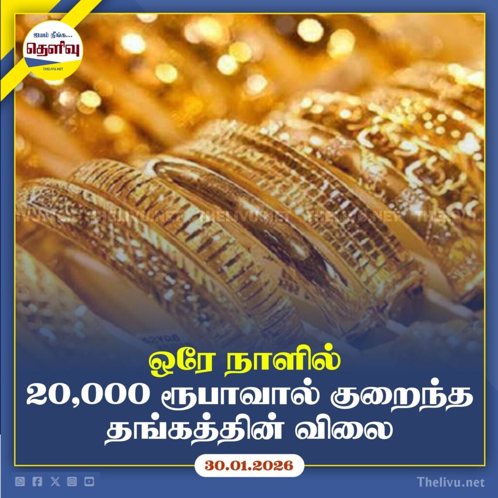 உலகச் சந்தையில் தங்கத்தின் விலை குறைந்துள்ளதன் எதிரொலியாக உள்நாட்டு தங்க விலைகளும் கணிசமாக வீழ்ச்சியடைந்துள்ளன. தங்கச் சந்தை தரவுகளின்படி நாட்டில் தங்கத்தின் விலை சுமார் 20,000 ரூபாவால் குறைந்துள்ளது.