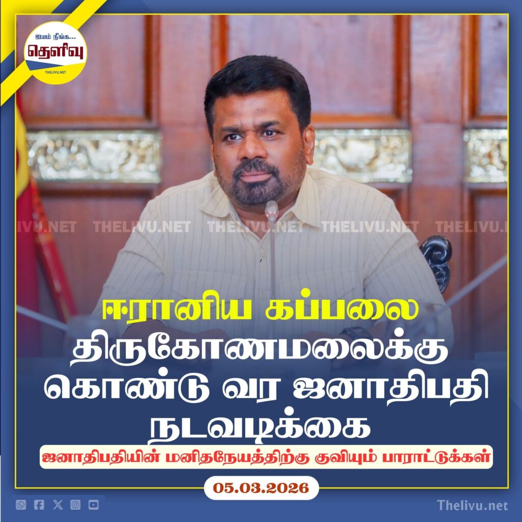 ஈரானுக்குச் சொந்தமான ‘IRIS Bushehr’ கப்பலை திருகோணமலை துறைமுகத்திற்குக் கொண்டு வருவதற்கான நடவடிக்கைகள் முன்னெடுக்கப்பட்டு வருவதாக ஜனாதிபதி அநுர குமார திசாநாயக்க தெரிவித்துள்ளார்.