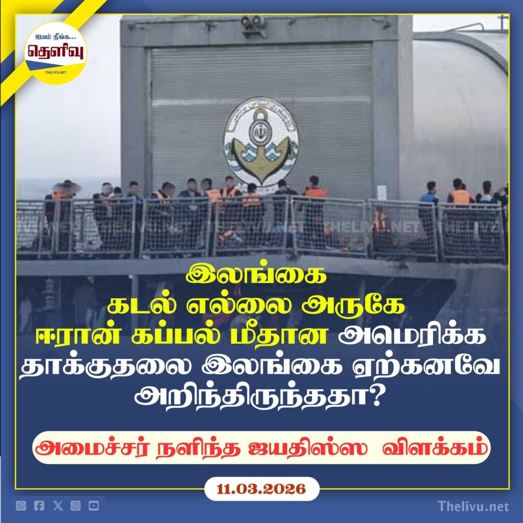 இலங்கை கடல் எல்லைக்கு அருகில் இருந்த ஈரான் போர்க்கப்பல் மீது அமெரிக்கா நடத்திய தாக்குதல் குறித்து இலங்கைக்கு முன்கூட்டியே எந்தவிதமான அறிவிப்பும் வழங்கப்படவில்லை என அமைச்சர் நளிந்த ஜயதிஸ்ஸ தெரிவித்துள்ளார்.