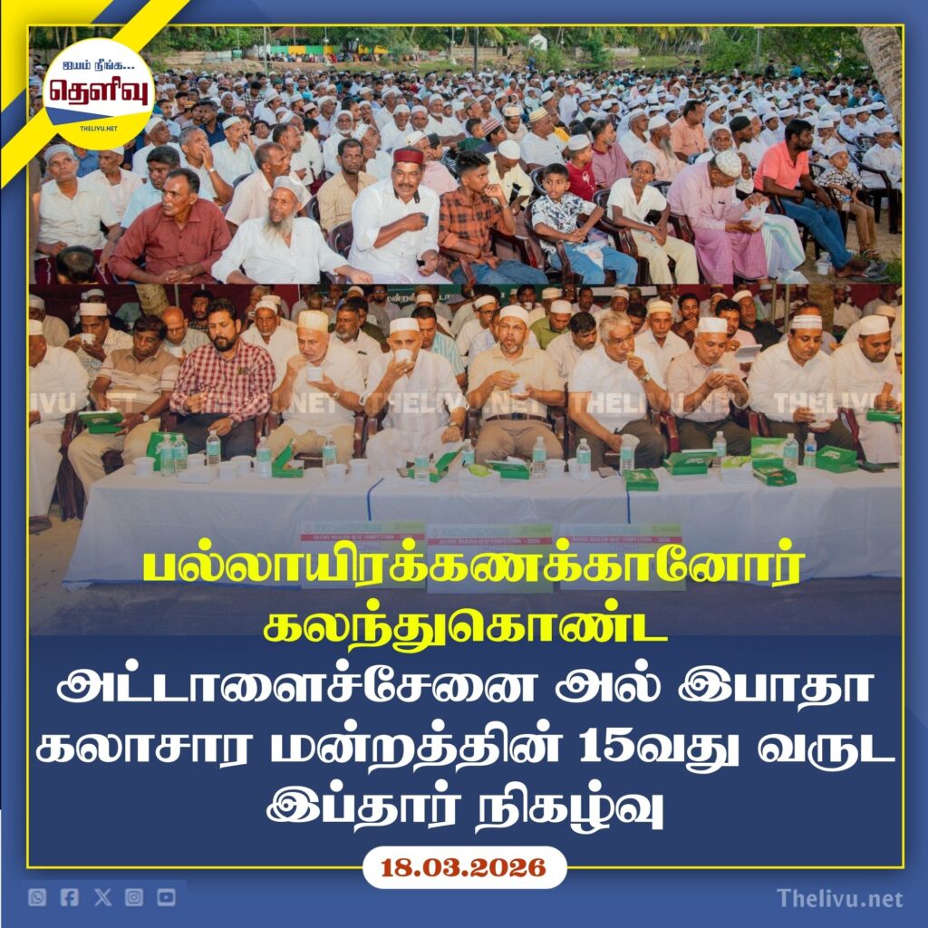 புனித ரமழான் மாதத்தின் ஆன்மீகச் சிறப்பை வலுப்படுத்தும் நோக்கில் அட்டாளைச்சேனை அல்-இபாதா கலாசார மன்றம் வருடாந்தம் நடத்தி வரும் ஹதீஸ் மஜ்லீஸ் நிகழ்வின் 15வது ஆண்டு நிறைவு விழாவை முன்னிட்டு ஏற்பாடு செய்யப்பட்ட இப்தார் நிகழ்வும் பரிசளிப்பு வைபவமும் 2026.03.15ம் திகதி அட்டாளைச்சேனை பெரிய பாலத்தடி முன்றலில் ஹதீஸ் மஜ்லீஸ் குழுவின் தலைவர் எம்.ஐ.சப்ரி தலைமையில் நடைபெற்றது.